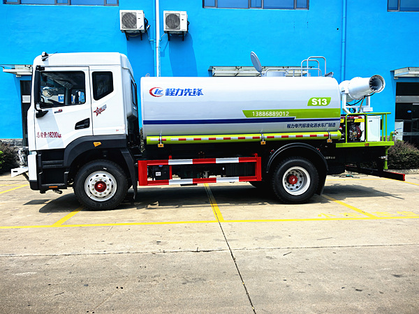 | 補充說明:程力12-13噸霧炮車均帶免征環保公告,上牌時可免交購置稅。車輛顏色可多種選擇。<灑水車廠家>專用部分由罐體、水泵、球閥、輸水管道、灑水裝置等部件組成。垂直吸程≥7米,灑水寬度≥16米,高炮射程≥30米,霧炮射程30-40米。 |