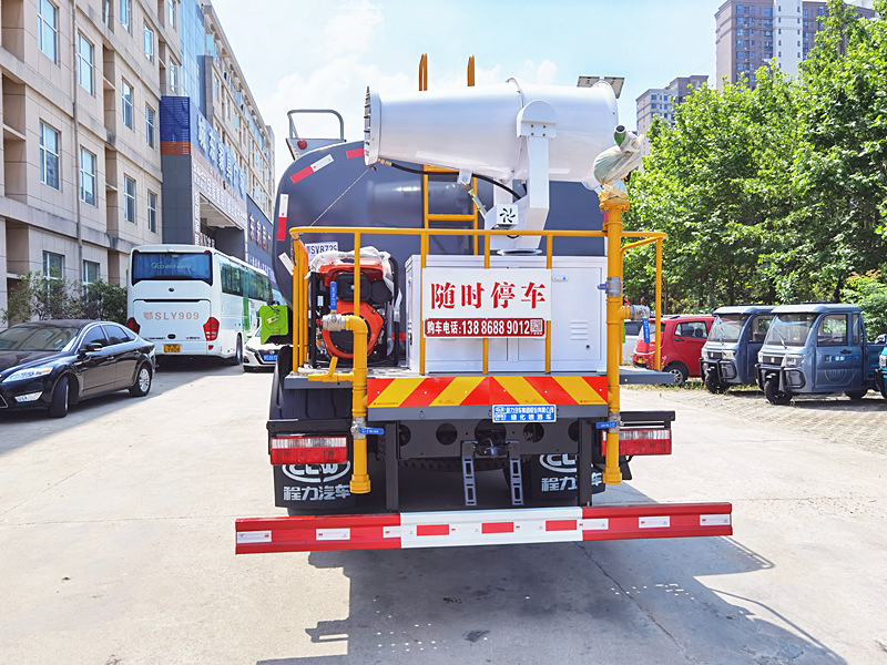 | 上裝配置:罐體采用國標(biāo)Q235碳鋼板制作,可選用30米、40米中型霧炮,罐體采用機(jī)器壓板一次性成型技術(shù),采用先進(jìn)旋邊機(jī),罐體包罐機(jī)工藝保證了罐體制作的精度和美觀。罐體厚度4mm,前后封頭5MM加厚型,罐體實際容積12立方(12噸),程力獨(dú)有烤漆工藝,多層底漆、防腐除銹,面漆噴涂。 功能齊全,配備前沖、后灑、側(cè)噴、綠化灑水炮,采用優(yōu)質(zhì)水泵,合理設(shè)計水路管道,氣控取力器,作業(yè)能力強(qiáng);采用柴油發(fā)電機(jī)大功率霧炮機(jī),噴灑距離選裝30-40米射程,運(yùn)用范圍廣泛。 |