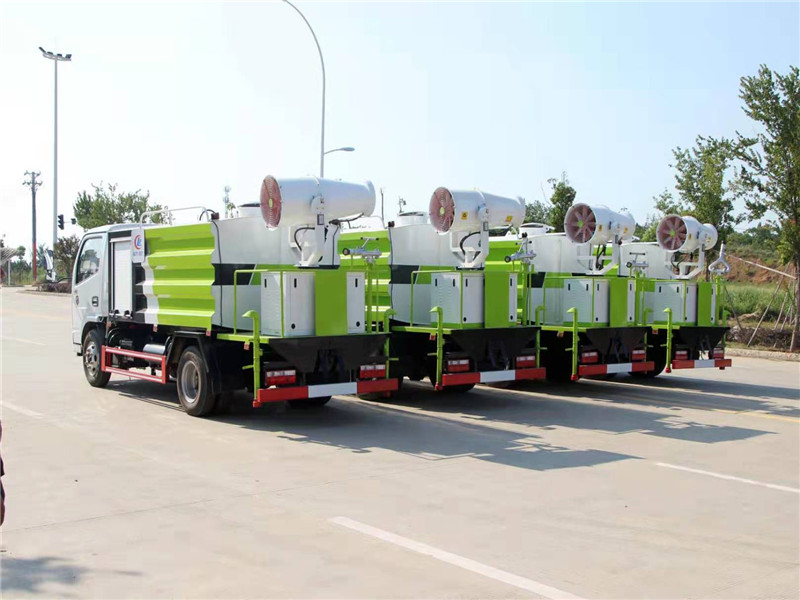 | 上裝配置:罐體采用國標Q235碳鋼,罐體采用機器壓板一次性成型技術,采用先進旋邊機,方形罐體工藝保證了罐體制作的精度和美觀。罐體實際容積5-7立方,全國獨有烤漆工藝,防腐除銹,多層底漆、面漆噴涂。 功能齊全,配備前沖、后灑、側噴、綠化高炮,采用優質水泵,合理設計水路管道,氣控取力器,作業能力強;采用柴油發電機大功率霧炮機,噴灑距離最高可達30米,運用范圍廣。 |